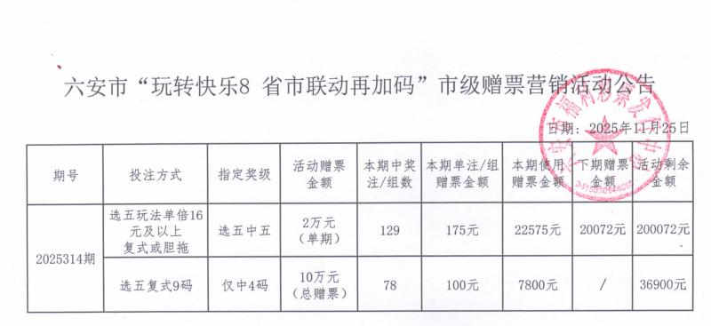 六安市“玩转快乐8 省市联动再加码”市级赠票营销活动公告
