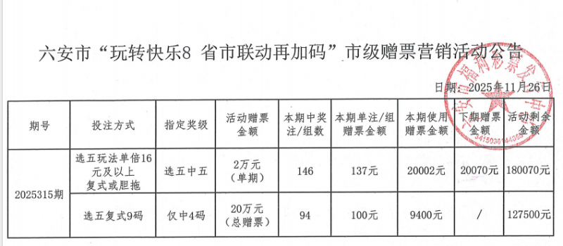 六安市“玩转快乐8 省市联动再加码”市级赠票营销活动公告