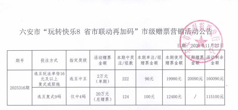 六安市“玩转快乐8 省市联动再加码”市级赠票营销活动公告