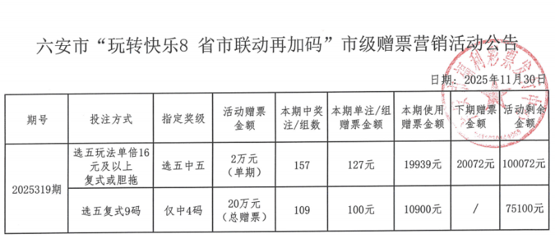 六安市“玩转快乐8 省市联动再加码”市级赠票营销活动公告
