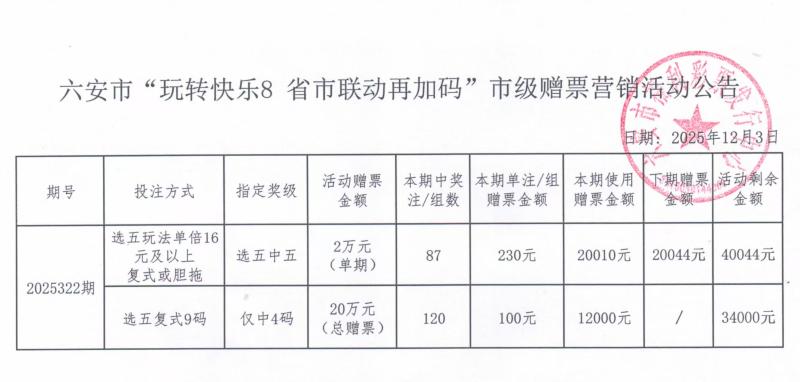 六安市“玩转快乐8 省市联动再加码”市级赠票营销活动公告