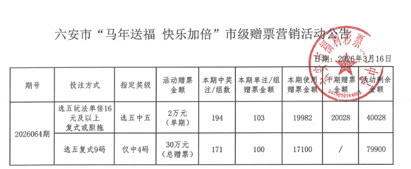 六安市“马年送福 快乐加倍”市级赠票营销活动公告
