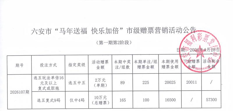 六安市“马年送福 快乐加倍”市级赠票营销活动公告(第一期第2阶段)
