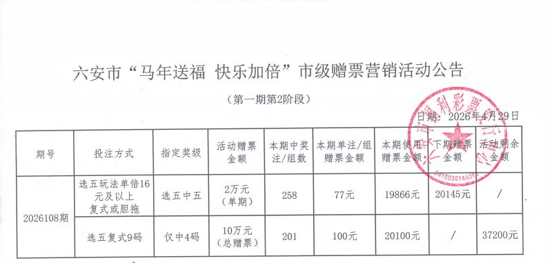 六安市“马年送福 快乐加倍”市级赠票营销活动公告(第一期第2阶段)