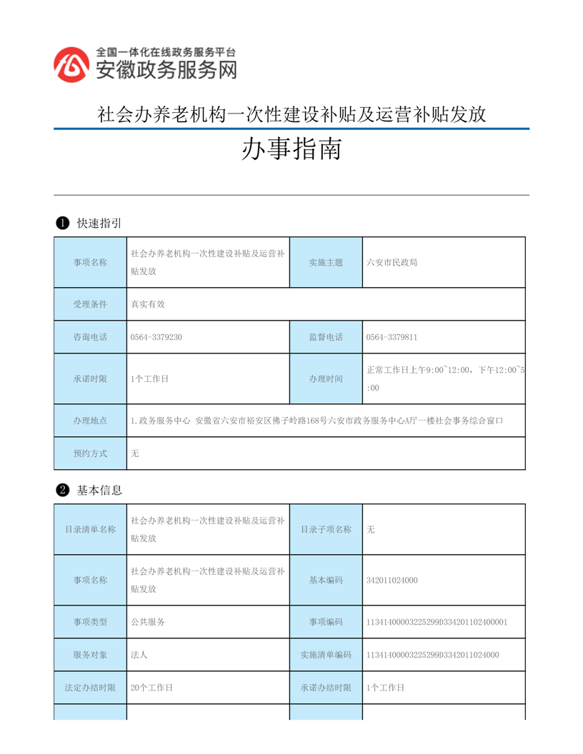 社会办养老机构一次性建设补贴及运营补贴发放网上办理流程和办事指南