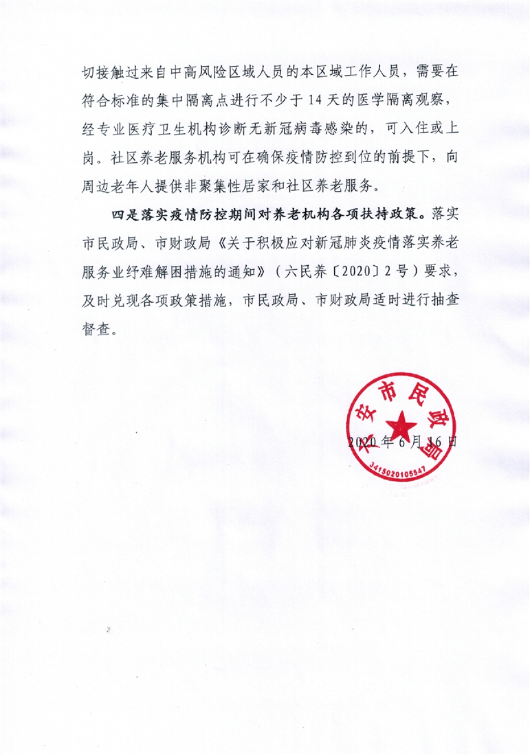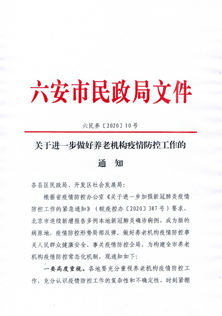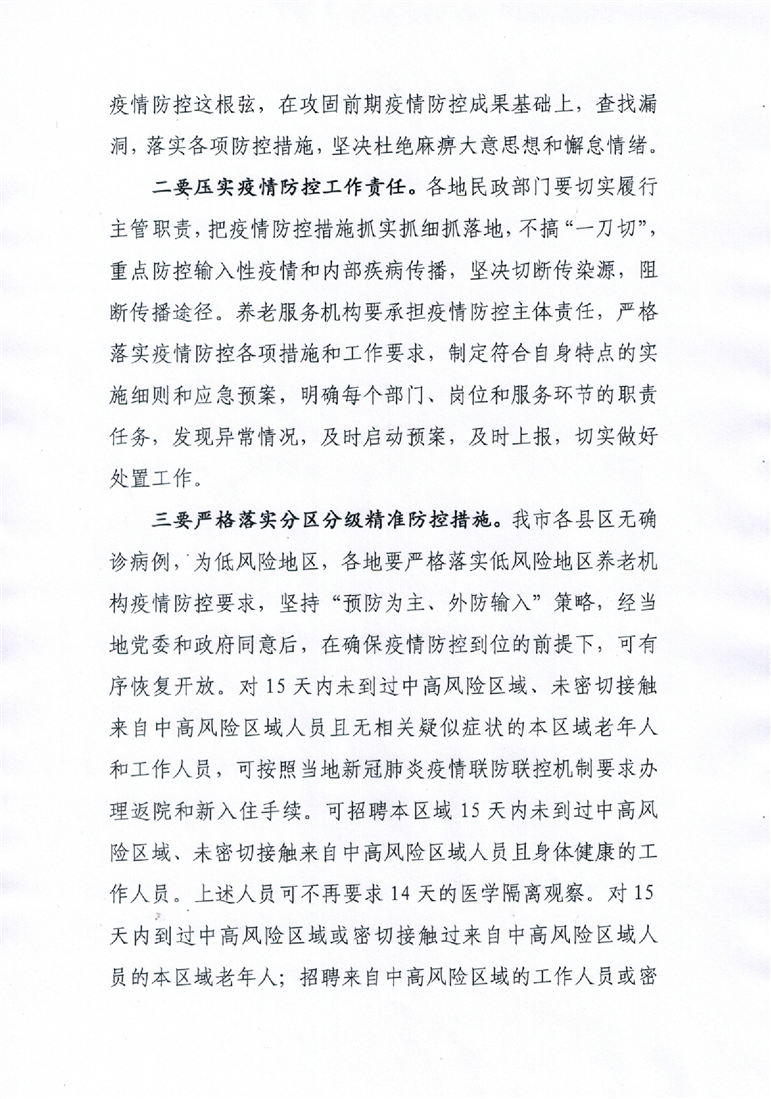 关于进一步做好全市养老机构疫情防控工作的通知