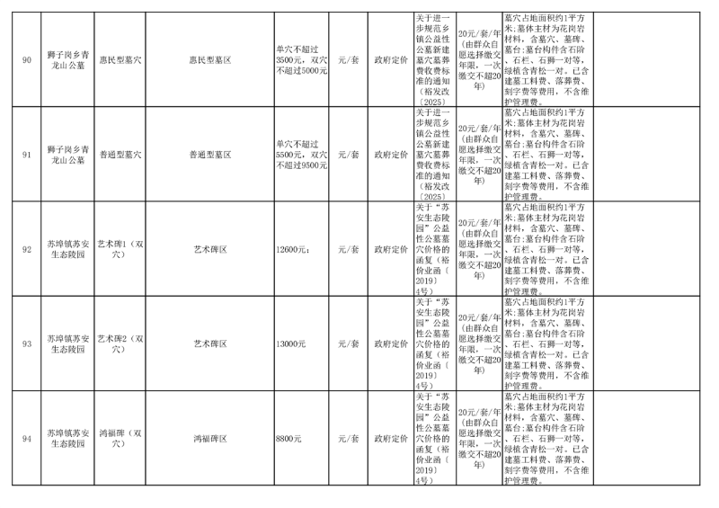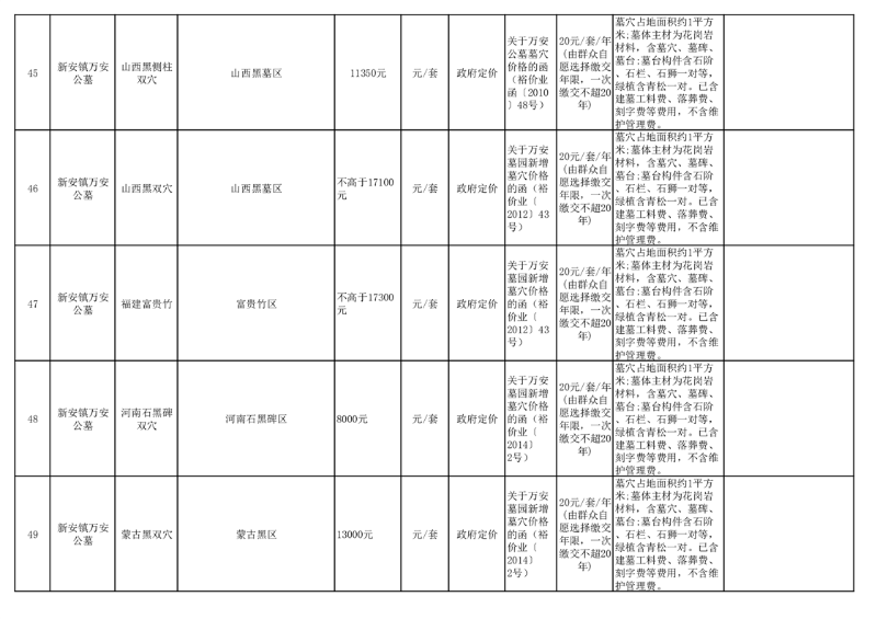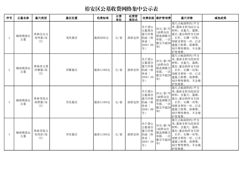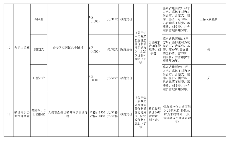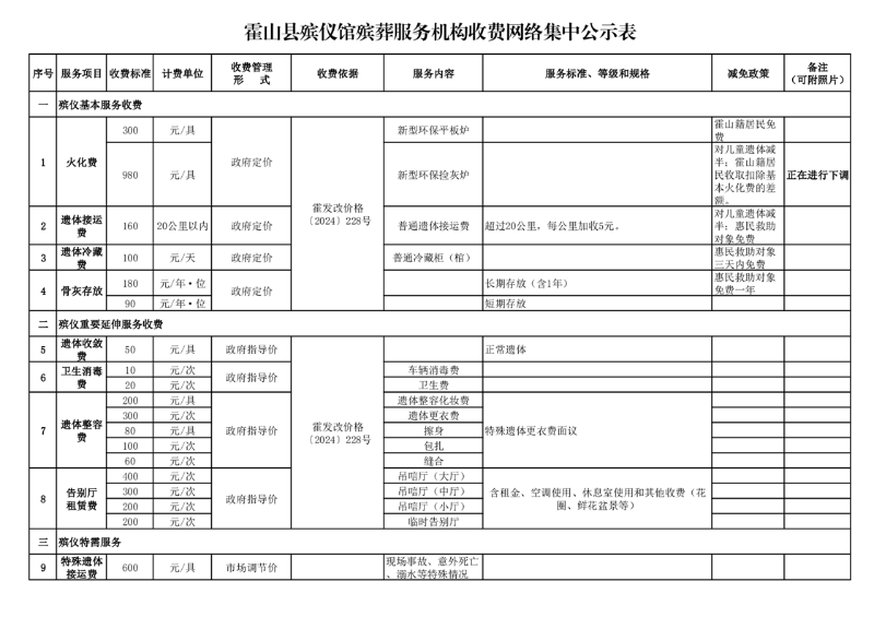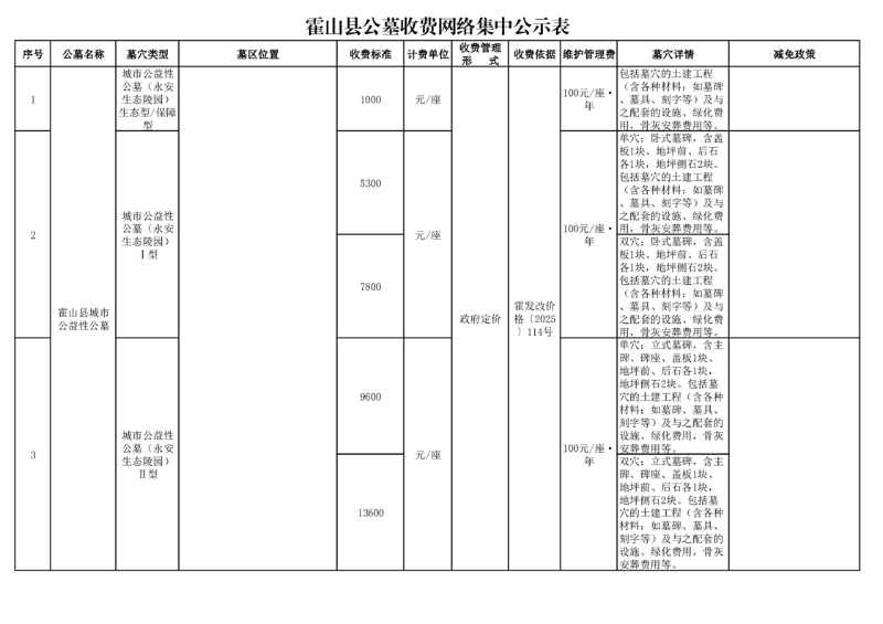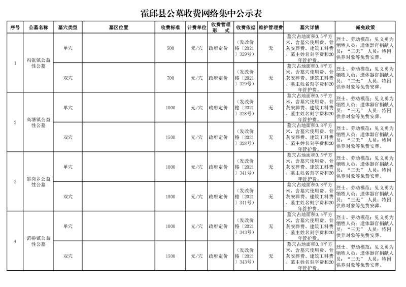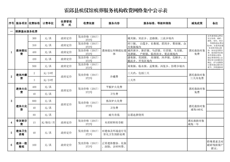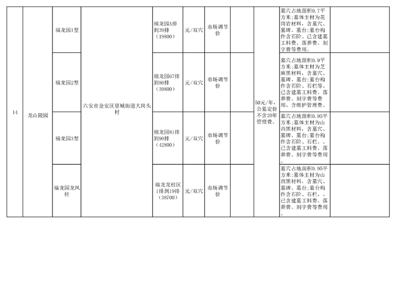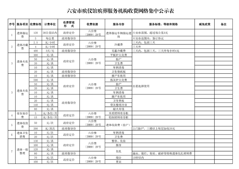 六安市各县(区)殡葬服务机构收费网络集中公示
