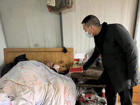 金安区民政局一行人前往淠东乡大庄组王大爷家为老人送上帮扶慰问金。老人不幸被确诊胃癌,妻子智力残二级,大儿子因病去世,小儿子患病暂居家中,家庭无劳动经济收入,乡民政办得知情况后,为该户办理了低保并纳入慈善救助对象,希望让他感受冬日里的暖暖人心。