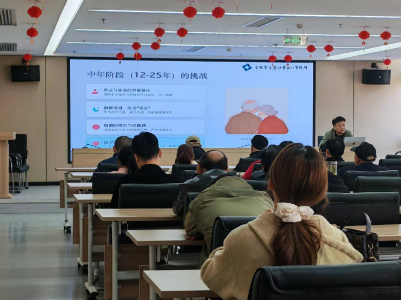 讲座中,社工立足基层婚姻家庭服务实务经验,用通俗易懂的语言和真实案例,围绕五大核心内容进行系统讲解,引导居民转变观念、掌握婚姻经营方法。从婚姻的本质与规律入手,帮助大家树立理性婚姻理念;讲解沟通艺术,破解日常沟通误区;传授冲突管理技巧,引导理性化解矛盾;分享亲密关系维护与升级方法,增进夫妻情感联结;同时梳理婚姻不同阶段的挑战与应对策略,为居民提供全面实用的指导。